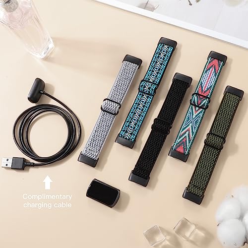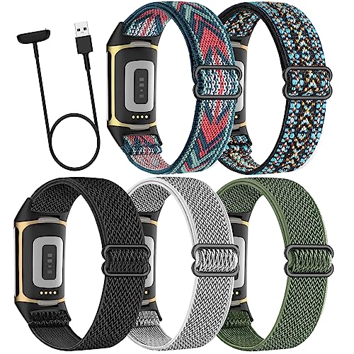 【Compatible Model】Folavii elastic nylon watch bands Compatible with Fitbit Charge 5 Only. (Package inclubes 5pcs bands and a charger cable, not watch.)