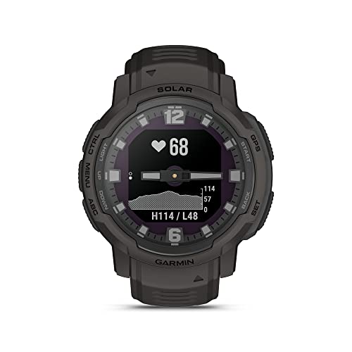 Contradict the common with Instinct® Crossover Solar. This rugged hybrid GPS smartwatch provides a classic analog experience with advanced smart functionality and high-resolution digital screen. Built-in RevoDrive™ technology delivers accurate analog timekeeping in even the most demanding environments. Train your way — indoors or out — with built-in sports apps, including everything from strength training to running to mountain biking. With 24/7 health monitoring, you can keep up with energy levels, stress, sleep and more (data presented is intended to be a close estimation of metrics tracked). Never miss a text — or anything else — with notifications right on your wrist from your compatible Android™ or Apple® smartphone. With a supported country and payment network, forget your cash and cards and pay from the Instinct Crossover Solar smartwatch with Garmin Pay™ contactless payments. Get infinite battery life in battery saver mode with solar charging (Assumes all-day wear with 3 hours per day outside in 50,000 lux conditions).