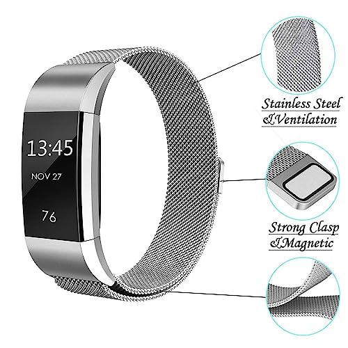 Metal Band Compatible with Fitbit Charge 2 Bands, Stainless Steel Mesh Loop Adjustable Wristband Replacement Strap for Fitbit Charge 2 Fitness Tracker