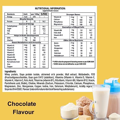 Ingredients: – Plant proteins: Soya isolate protein and pea protein, 25 essential nutrients, including vitamins and minerals, micronutrients fortified to meet the daily Recommended Dietary Allowance (RDA) value, additional key ingredients for building immunity.