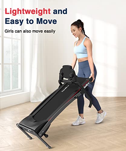 【Longer service life】Our compact treadmill is thicker than the same type treadmill, which effectively prevents the lightweight treadmill from breaking, thus prolonging the service life of the treadmill. Using a 1.5hp motor, the maximum weight can reach 220lb, and the low-noise motor can also ensure that walking, jogging and running at home will not disturb neighbors.