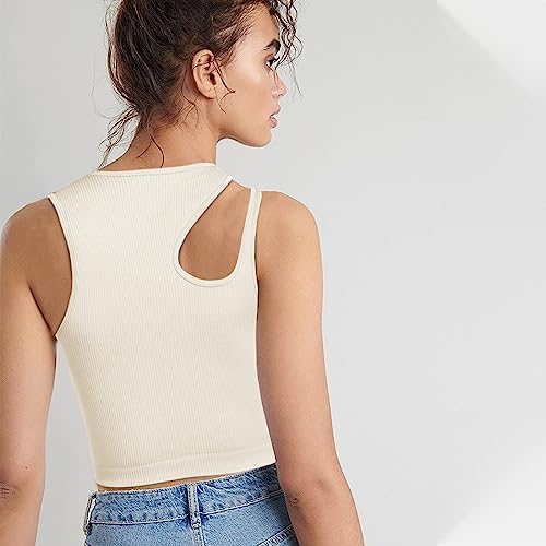Relety Women’s Crop Tank Tops Sexy Cut Out Seamless Ribbed Summer Tops Halter Neck Racerback Sleeveless Yoga Workout Shirts