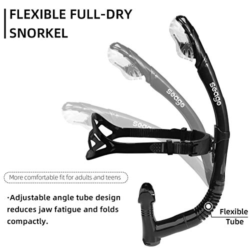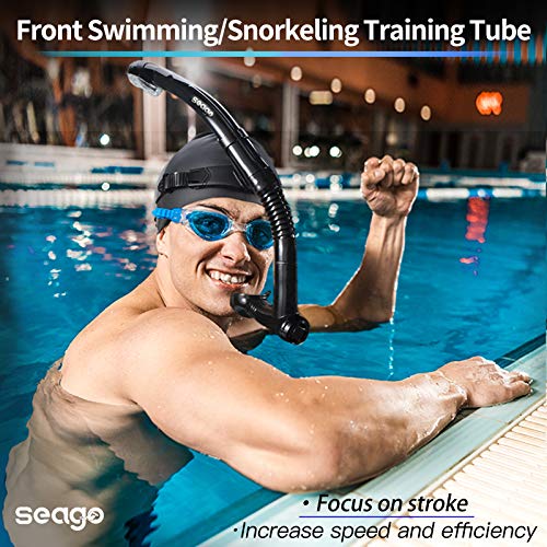 Seago Swim Snorkel for Lap Swimming, Dry Top Front Swimmer Snorkel for Adult Youth, Snorkel Gear Swimming Training Equipment in Pool and Open Water with Comfy Head Pads Food-Grade Silicone Mouthpiece