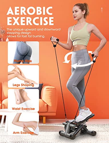 Sportsroyals Stair Stepper with Resistance Band, Mini Stepping Fitness Exercise Home Workout Equipment for Full Body Workout,330lbs Weight Capacity Grey