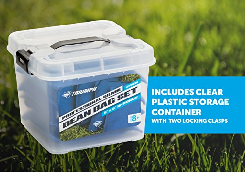 Forget trying to repair your old bean bags and upgrade to the Triumph Black Canvas Duck Cloth Bean Bag Set. The 16-ounce bean bags feature a durable duck cloth exterior that allows you to enjoy hours of fun playing bag toss with family and friends. The 6” x 6” square black bags have an ultra-lightweight interior liners to enclose any pellet dust and eliminates any mess. When finished playing, easily transport and store the bean bags in the included clear plastic storage container with two locking clasps. The set of four professional grade bean bags also are available in black, blue, grey, red, and yellow.