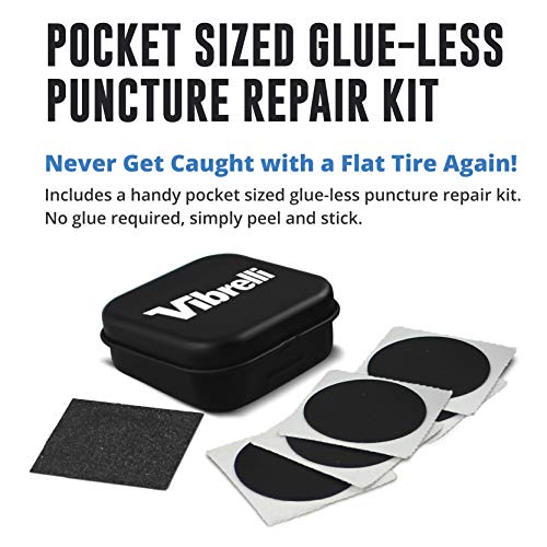Vibrelli Bike Floor Pump with Gauge – High Pressure 160 PSI – Presta Valve Bike Pump Automatically Switches to Schrader – Bicycle Pump Comes with Glueless Puncture Kit