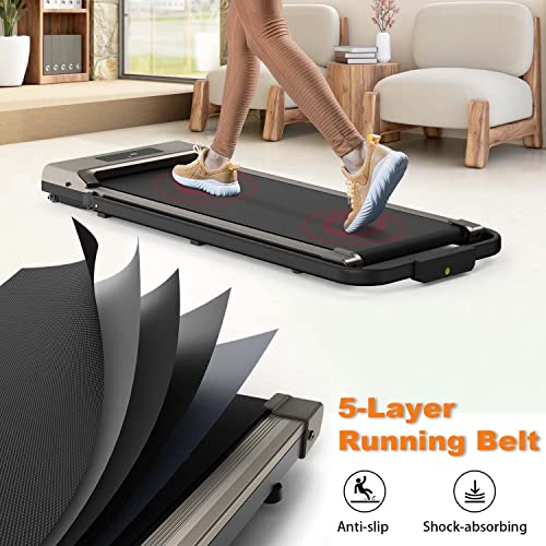 With LED Display & Remote Control – Track your progress in real-time with walking pad LED display, which clearly shows time, speed, distance, and calories. The remote control allows you to change speed or stop the treadmill, while the safety key ensures instant stopping in case of an emergency