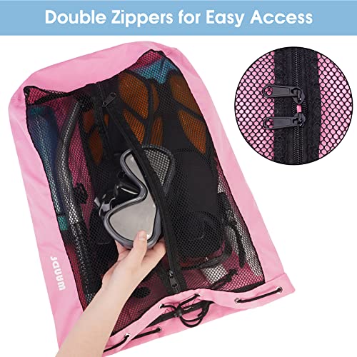 Breathable mesh: The non-mesh part of the swim bags for swimmers is made from water-resistant oxford, and the mesh pocket is made of tear-resistant material. It dries quickly and lets sand fall off easily, while keeping wet towels breathable in the beach tote.